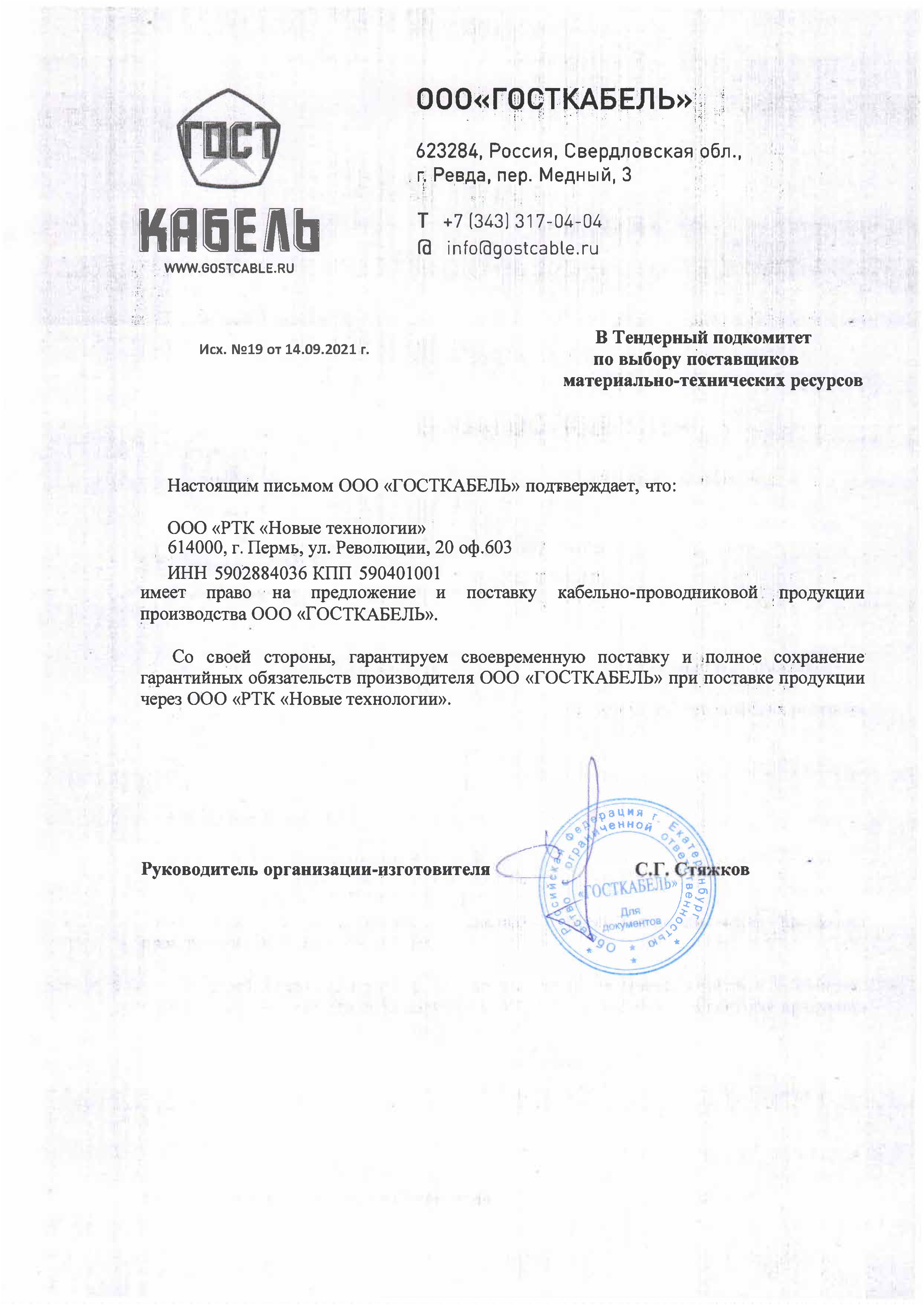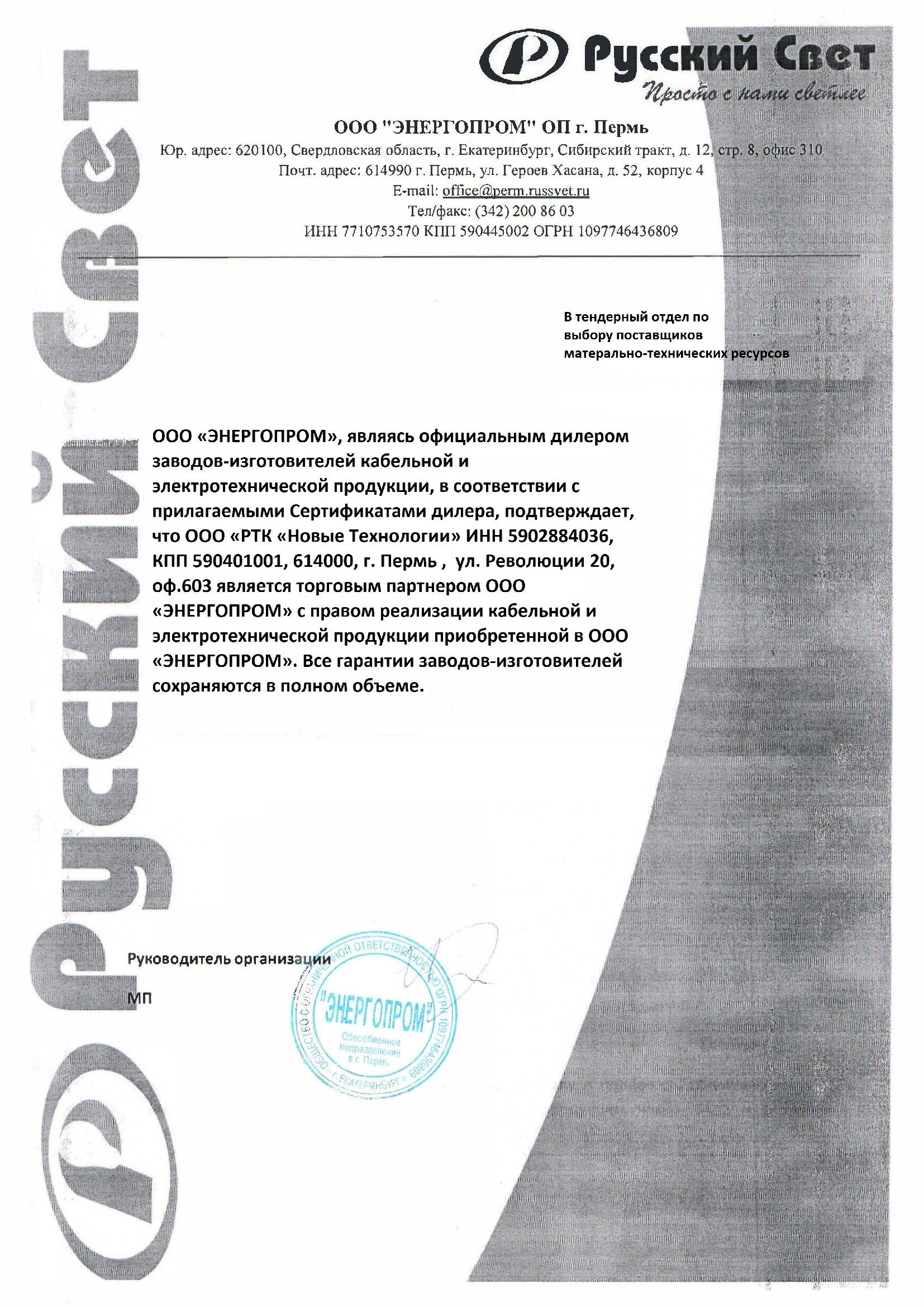 Свидетельство ООО "САРАНСККАБЕЛЬ"